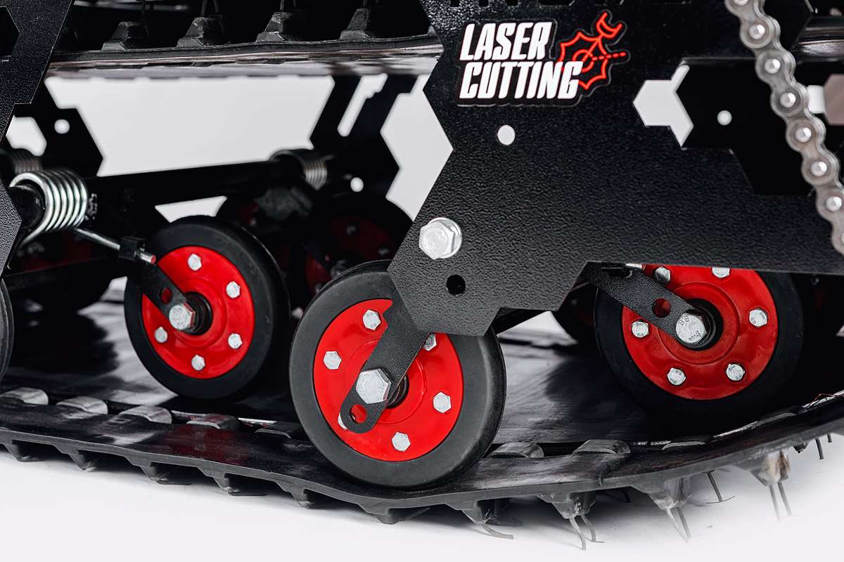Уникальная подвеска IKUDZO с регулировкой угла атаки для движения по снегу, траве и болоту.