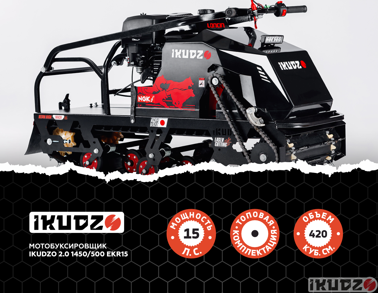 Мотобуксировщик IKUDZO 2.0 (2023): Эволюция Лидера. Новый уровень надежности, комфорта и проходимости.